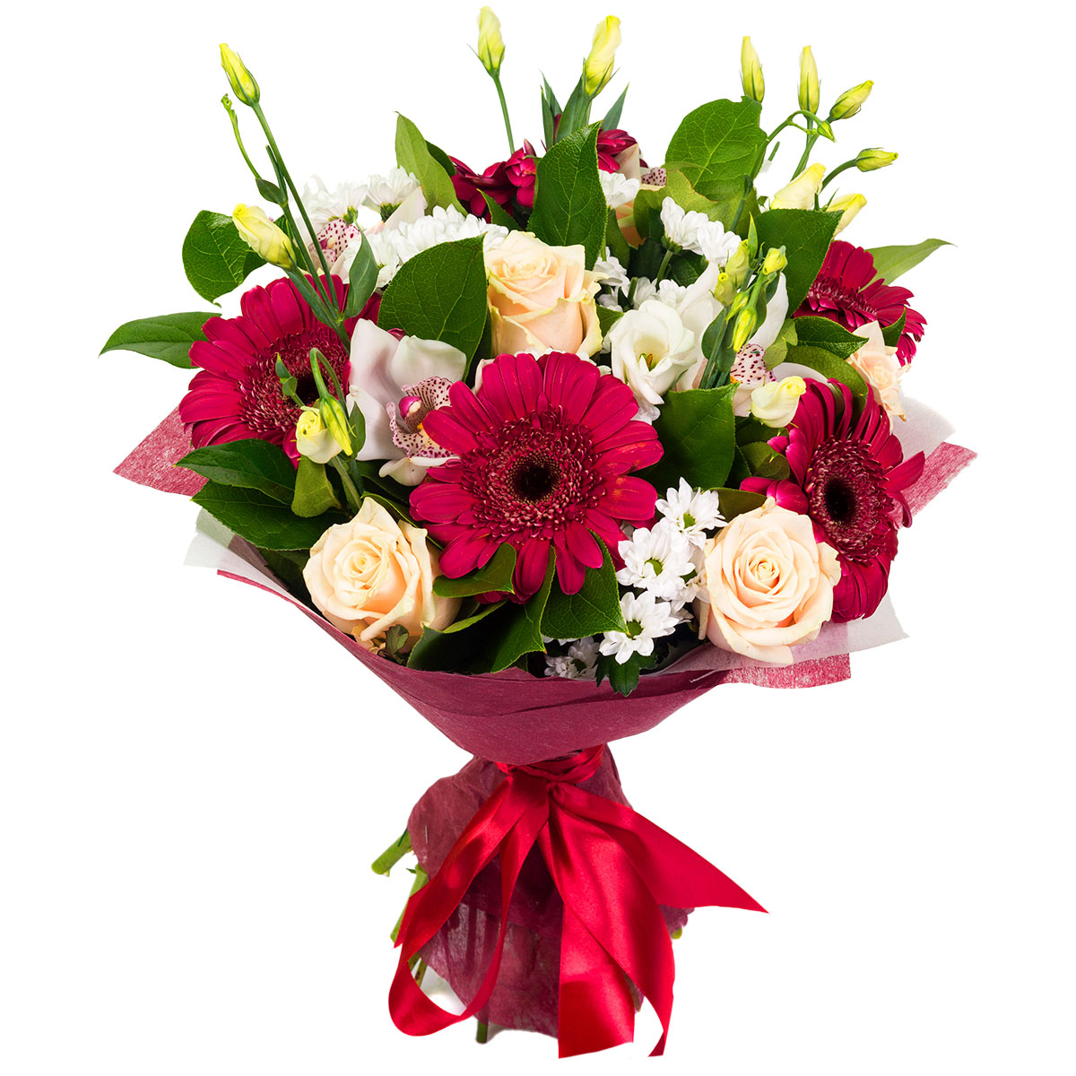 | Состав | Герберы, Орхидеи, Розы, Хризантемы, Эустомы |