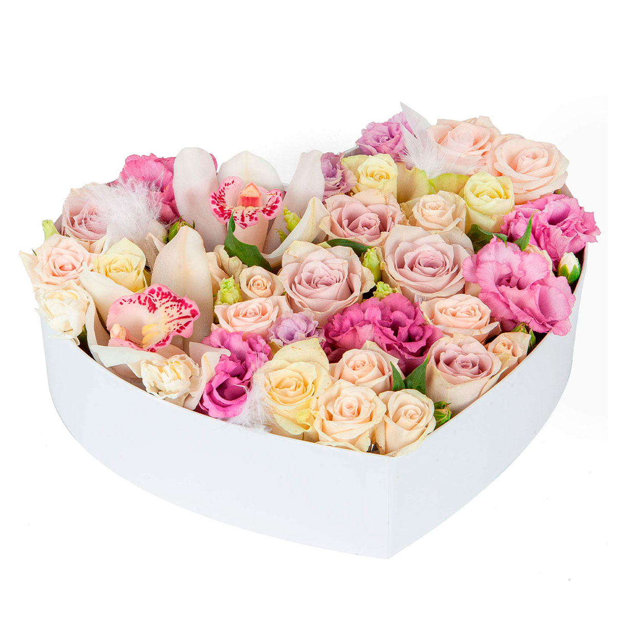 Цветы в коробке «Нежный флер» с доставкой по г Киров (Калужская обл): вы можете купить букет в цветочном интернет-магазине «Флормания» по цене от 2890 руб.