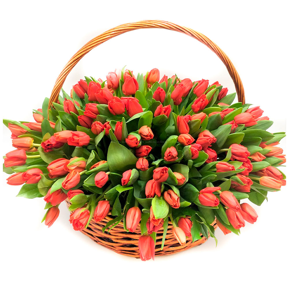 Цветы в корзинке «Красные тюльпаны» с доставкой по г Киров (Калужская обл): вы можете заказать букет в супермаркете цветов «Флормания» по цене от 3190 руб.